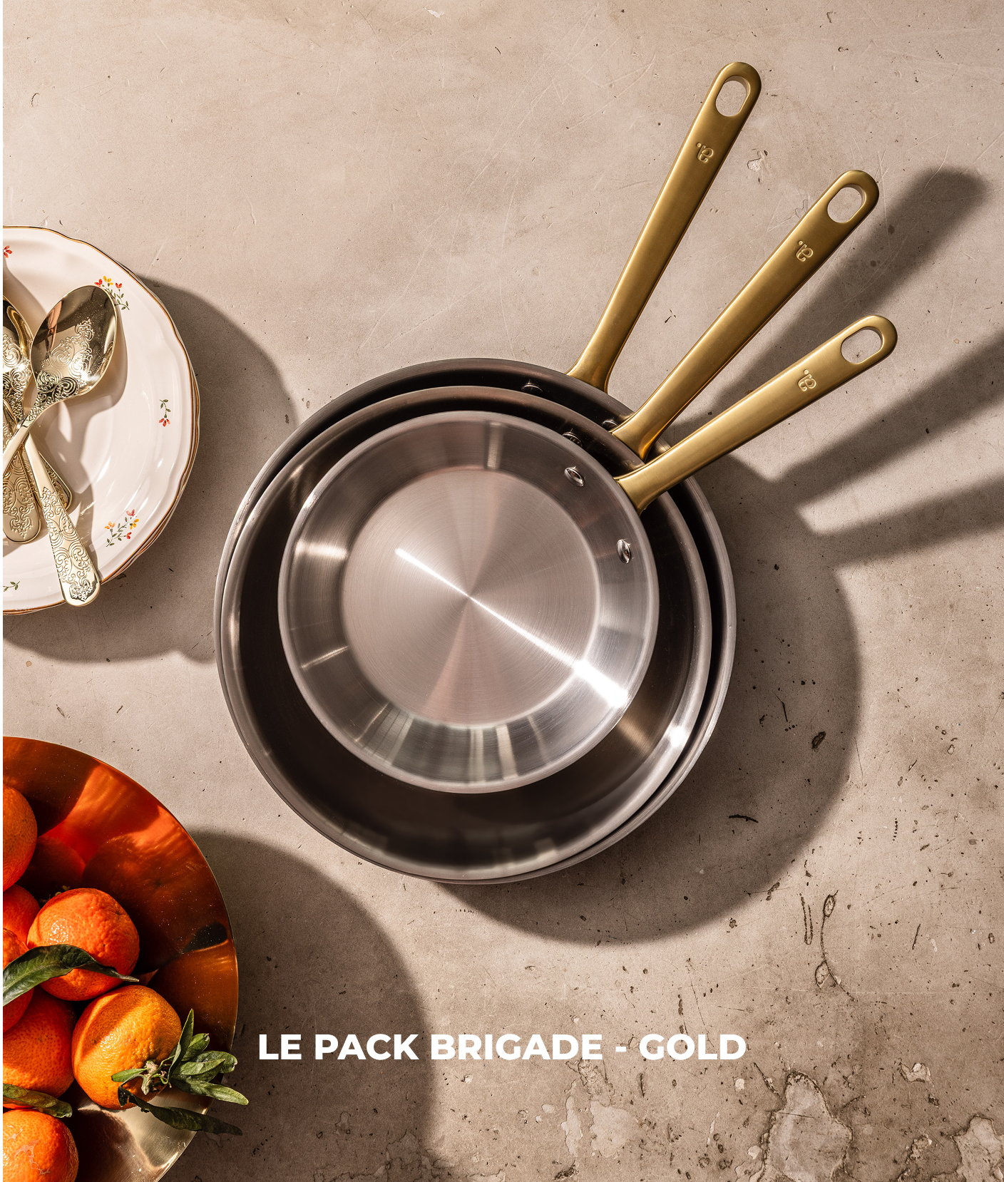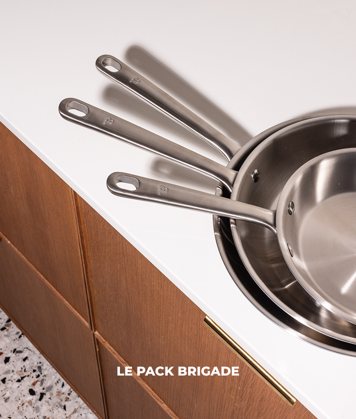 Nous avons également développé notre batterie de poêles en accordant une grande importable à l'esthétique et au design. Notre design est unique et nous l'avons conçu avec Marc Venot designer industriel français multi-primé. C'est subjectif mais nous on les trouve magnifiques !