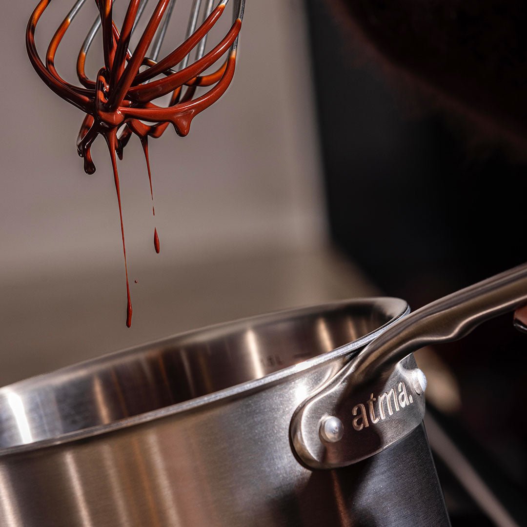 Chez Atma, on souhaite que les passionné.es et amateurs de cuisine puissent s’offrir la même qualité que les chef.fes des meilleurs restaurants. C’est pourquoi nous avons opté pour un inox 3 couches sur toute la surface pour une diffusion optimale de la chaleur : vos préparations sont plus rapides, plus précises et évidemment plus savoureuses. Et oui, on le rappelle, l’inox 3 plis est compatible avec tous les types de feux et donc compatible induction, gaz, électrique, four et plaques vitro-céramique.