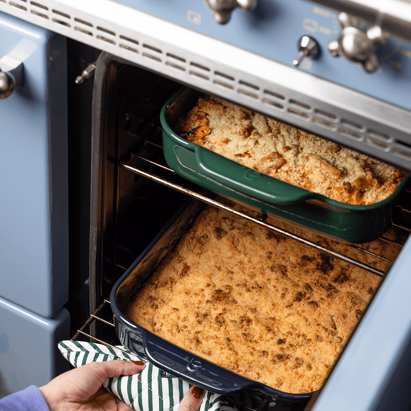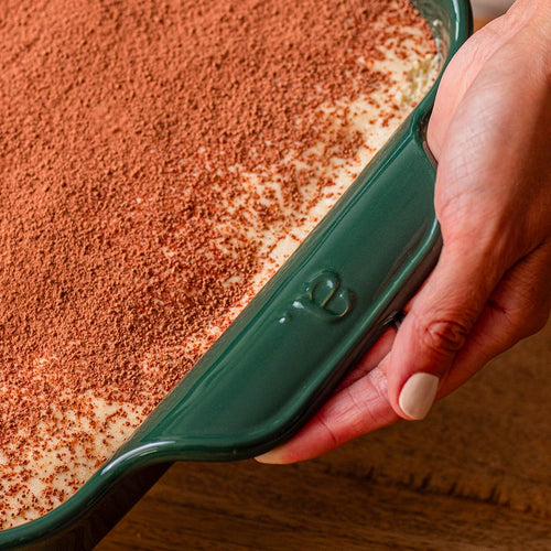 Nous avons collaboré avec Marc Venot, notre designer français, pour imaginer un plat à four élégant, pratique et intemporel. Celui dont on ne se lasse pas malgré le temps qui passe. Nous avons ensuite visité plusieurs usines, réalisé des dizaines de prototypes avant d'avoir le plat à four parfait, fidèle au dessin de Marc. Et oui, le diable se cache dans les détails : ce subtil relief que nous avons imaginé au niveau du contour des poignées était finalement très compliqué à obtenir étant donné la fabrication artisanale. Pour les coloris, nous avons dû réaliser une dizaine d'essais avant d'obtenir le vert olive parfait et ce bleu nuit profond, qui sublimera chacune de vos tablées. Vous l'aurez compris, on a imaginé le plus beau et le plus performant pour que les compliments pleuvent lorsque vous servez vos convives.