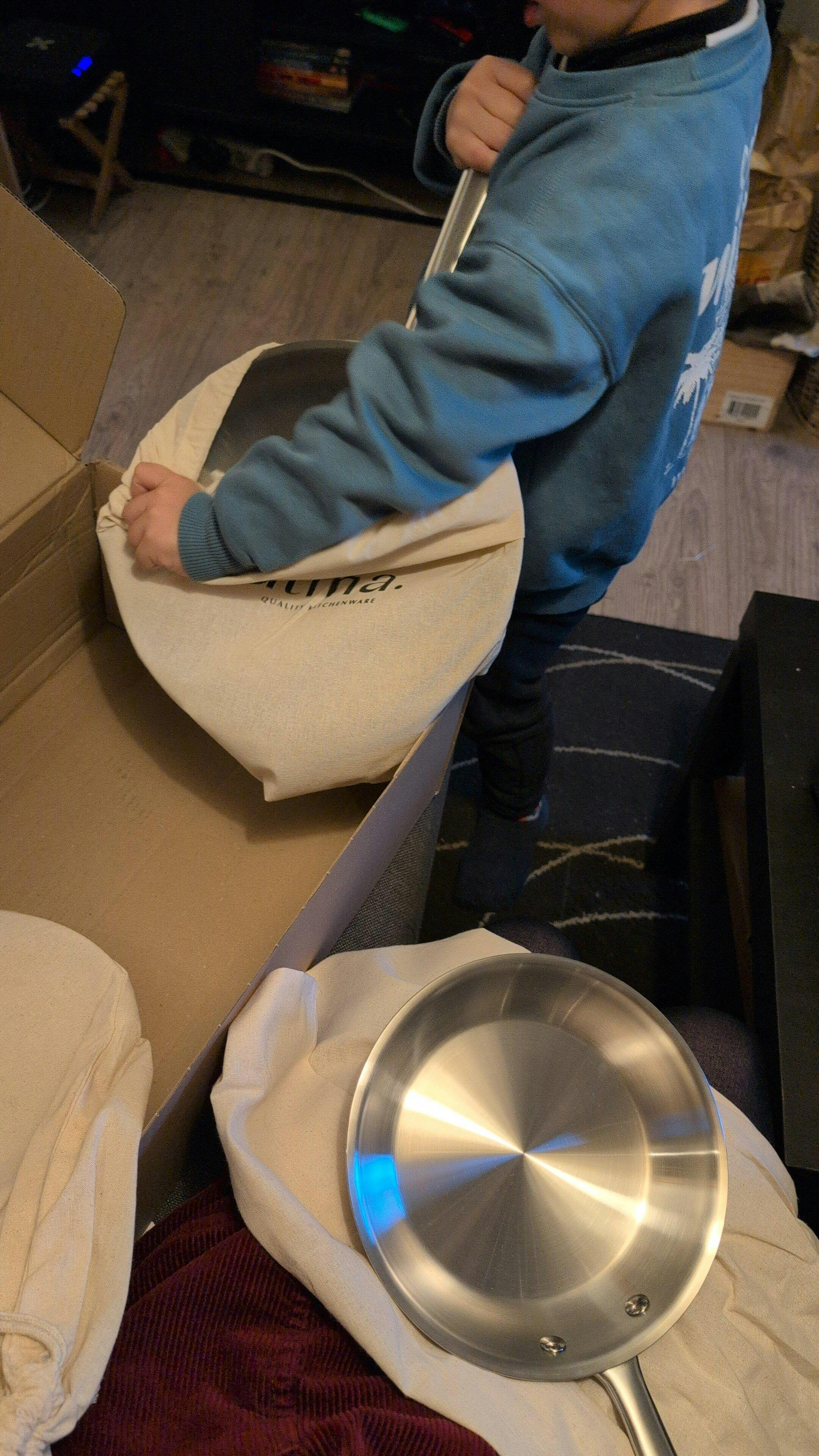 Pour vous accompagner, nous vous proposons des articles sur notre blog avec plein de conseils pour réussir vos cuissons dans un poêle inox. Ainsi que des vidéos tuto sur notre chaine Youtube. Vous recevez également un guide de cuissons dans votre colis. Pour résumer, il suffit de bien faire préchauffer sa poêle à feu moyen pendant 2 minutes, de faire le test de la goutte d’eau puis d’ajouter de la matière grasse pour toutes vos préparations culinaires sauf la viande pour laquelle ce n’est pas indispensable. Ah oui et jamais de feu vif, pas besoin grâce à la technologie des 3 plis. Voilà, vous savez tout.