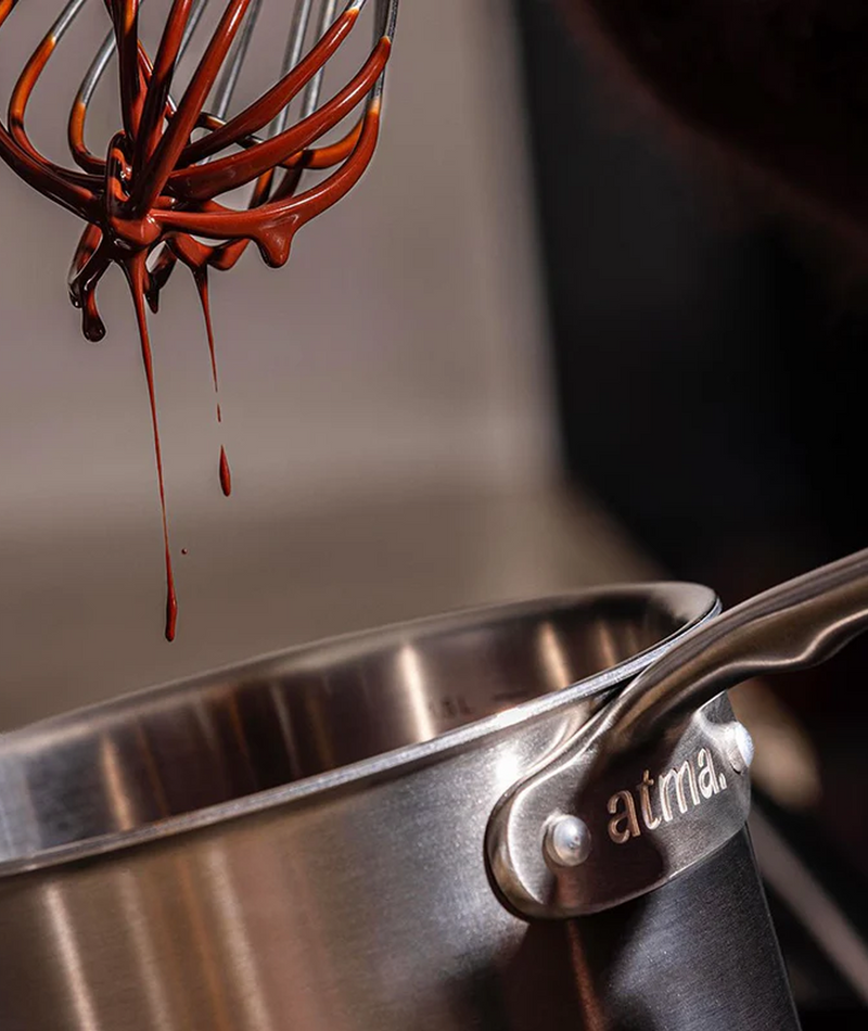 Unsere Pfannen in Profiqualität wurden vollständig von unserem Team gemeinsam mit unserem Designer und unserer Partnerfabrik in Frankreich entwickelt. Mit Atma möchten wir Ihnen das Beste bieten, mit außergewöhnlichen Materialien und anerkanntem Know-how.