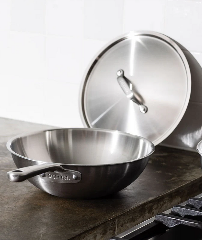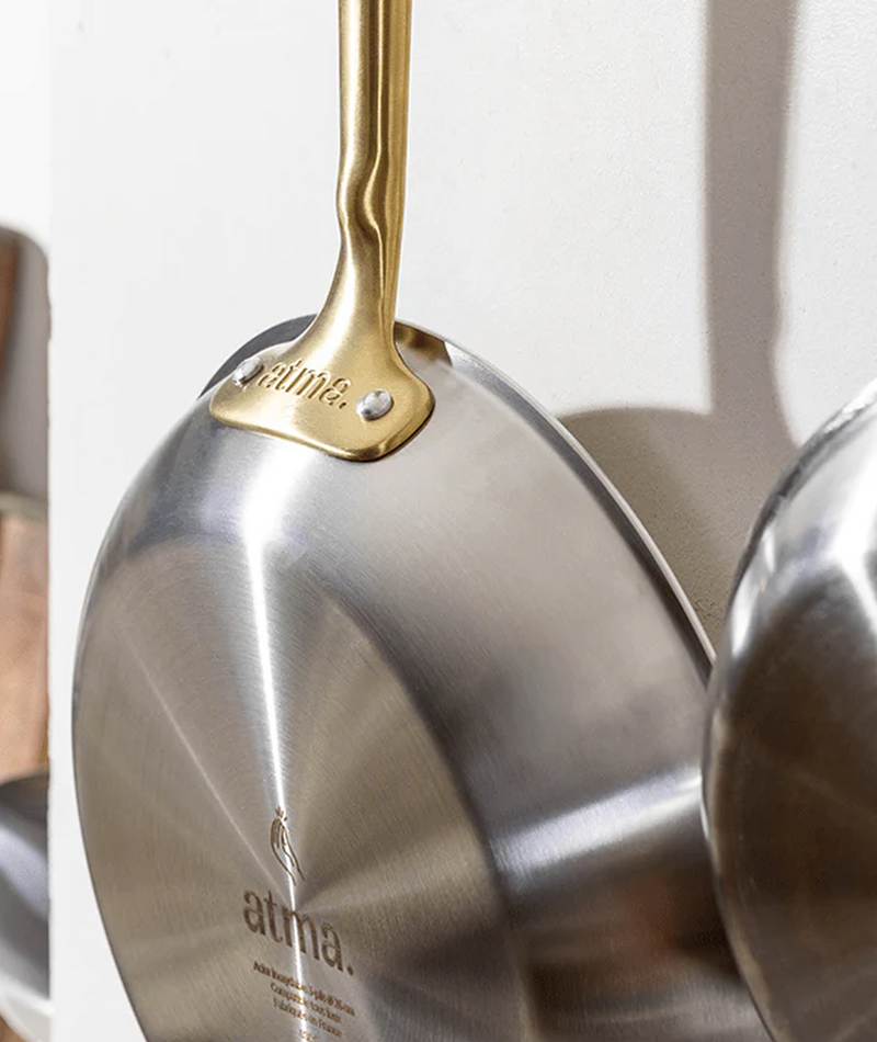 Ein Atma-Tipp: Überladen Sie die Pfanne nicht. So wird die Wärme besser verteilt und die Lebensmittel kleben nicht aneinander. Verwenden Sie außerdem geeignete Kochutensilien, vorzugsweise aus Holz oder Silikon, um die Oberfläche des Edelstahls zu schonen – auch wenn sie sehr widerstandsfähig ist.