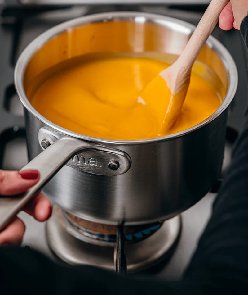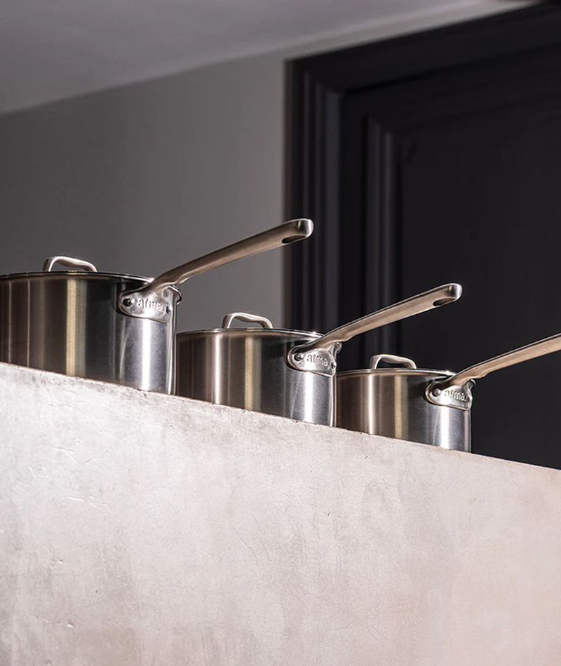 Nicht ohne Grund kochen alle großen Spitzenköche seit jeher mit Edelstahl. Bei der Entwicklung unseres Pfannensets haben wir außerdem großen Wert auf Ästhetik und Design gelegt. Unser Design ist einzigartig und wurde gemeinsam mit Marc Venot, einem mehrfach ausgezeichneten französischen Industriedesigner, entworfen. Das ist natürlich subjektiv – aber wir finden sie wunderschön!