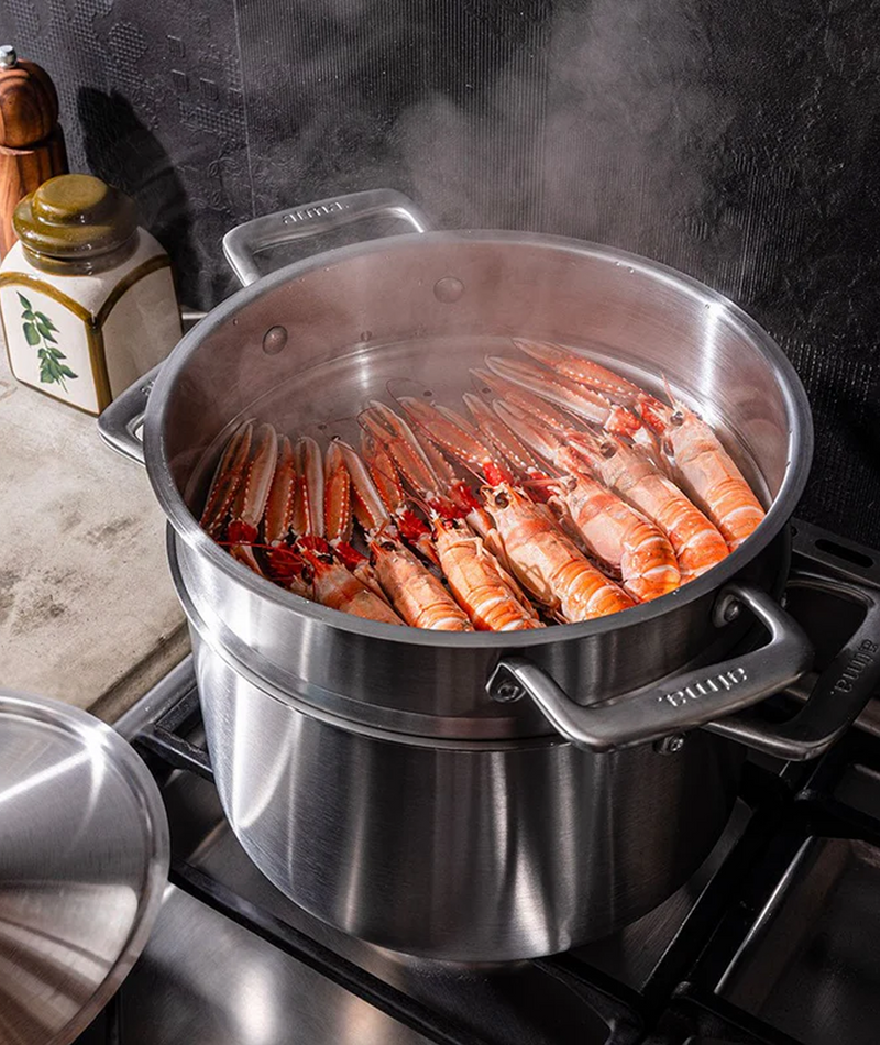 Das ist einer der großen Vorteile von Edelstahl in der Küche: ein äußerst robustes und widerstandsfähiges Material, das die Zeit überdauert und dabei seine hervorragenden Kocheigenschaften bewahrt.
