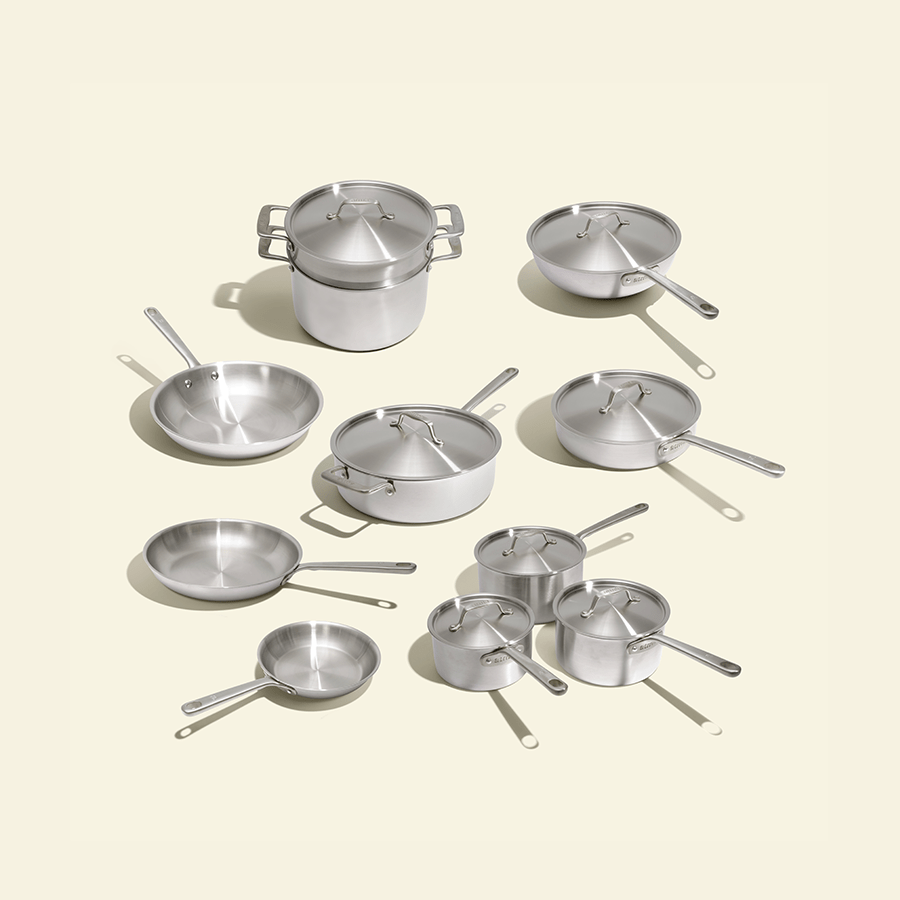 Weil dieses Material die Art und Weise, wie wir kochen, revolutioniert und Bratpfannen ermöglicht, die neue Maßstäbe setzen. Wir verwenden 2,3 mm dicken 3-lagigen Edelstahl, der aus 3 Schichten besteht: