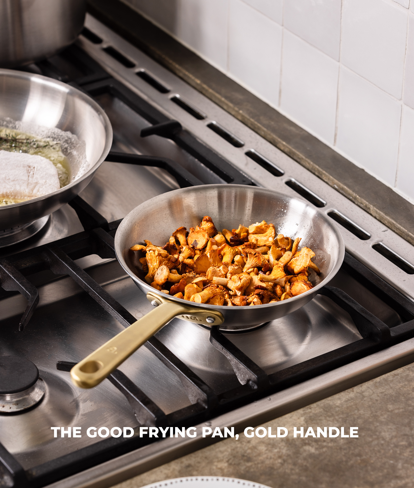 All our cookware is made of 100% stainless steel with no non-stick coating, so it's 100% safe for your health and also environmentally friendly. Our stainless steel pans are guaranteed to be chemical-free, PFAS-free, PFOA-free, and PTFE-free. From now on, you can cook peacefully without worrying about the microplastic particles you might ingest with non-stick pans. So there areThere are many advantages to cooking with stainless steel pans.