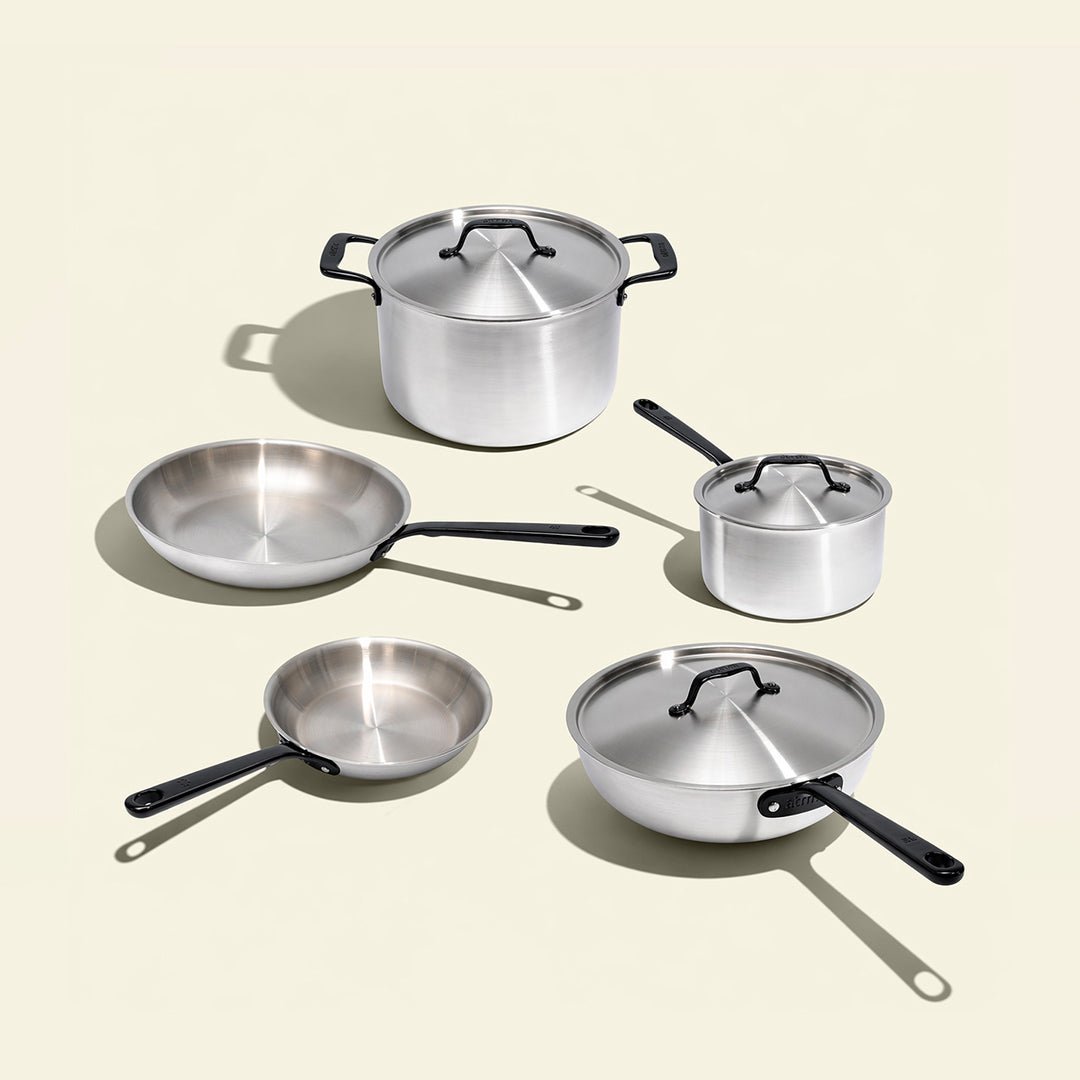 Nos ustensiles en inox 3-plis 18/10, sans revêtement, offrent une alternative sûre et efficace. Leur structure (épaisseur 2,2 mm) se compose de :