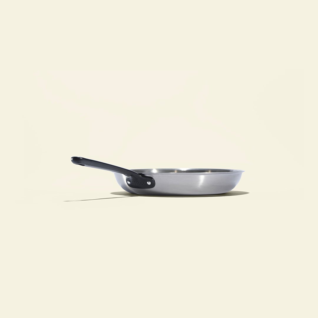 The Good Frying Pan is built to last and comes with a lifetime guarantee. Stainless steel is naturally durable and really easy to care for. The handle is securely riveted for added strength and hollowed out to limit heat transfer for a safer, more comfortable grip.