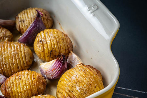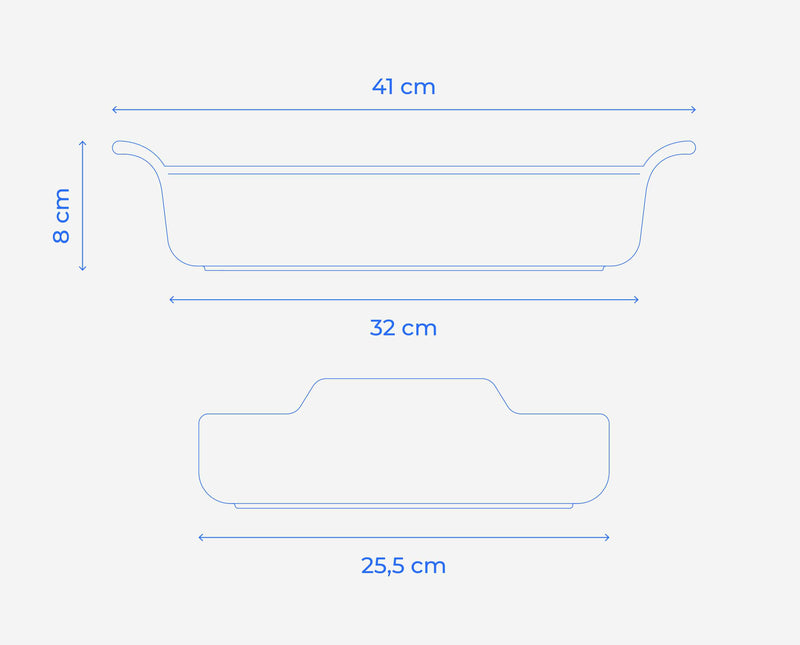 Entrantes, platos principales, postres, todo lo puedes cocinar con la fuente de horno grande. Su formato rectangular y su capacidad de 4L te permiten crear recetas generosas para tus grandes mesas. Optamos por la cerámica porque es un material natural, que en nuestra opinión tiene un acabado más estético y original que el vidrio. El esmalte también tiene muchas ventajas, como conferirle al plato propiedades antiadherentes, hacerlo más fácil de limpiar y ser extremadamente duradero. Dile adiós a los platos desconchados y a los cuchillos rayados. Por ello, nuestra fuente para horno es apta para horno hasta 250 °C, para congelador hasta -25 °C, apta para microondas y apta para lavavajillas.