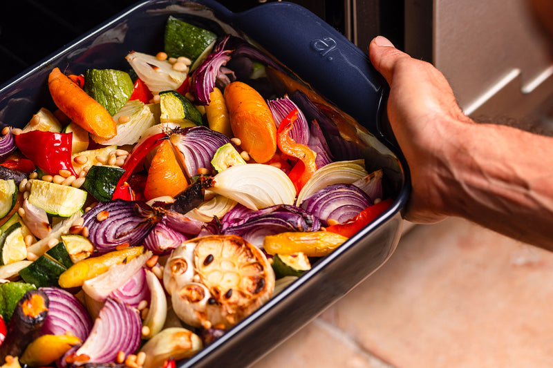 Hemos diseñado este plato para horno contigo. Como siempre, os pedimos vuestra opinión y más de 1.200 habéis compartido con nosotros vuestras expectativas. Así que analizamos cada una de tus respuestas para entender mejor cuál es la fuente de horno perfecta para ti. Cerámica o vidrio: usted se ha decidido por la cerámica. ¿Su formato? Rectangular como desees. Para los colores, la elección fue compartida entre un verde oliva y un bonito azul medianoche. Por eso hemos decidido complacerte y ofrecerte estos dos colores atemporales.