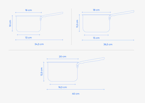 - Incluye cazos de 16, 18 y 20 cm de diámetro