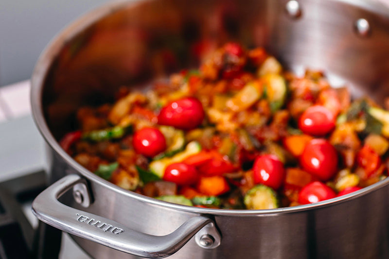 En Atma, la Sauté es un utensilio de cocina que adoramos. A medio camino entre el cazo y la sartén, su fondo plano y sus bordes altos permiten saltear, freír, reducir, dorar o incluso hervir. Verduras, salsas, carnes, pescados, frutas, guisos, pasta… el número de recetas que se pueden preparar con la Sauté es incontable, de tan polivalente que es. Así que es importante elegirla bien.
