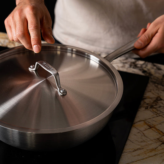 En Atma, queremos que los aficionados a la cocina puedan disfrutar de la misma calidad que los chefs de los mejores restaurantes. Por eso hemos optado por el acero inoxidable de 3 capas en toda la superficie para una distribución óptima del calor: sus preparaciones serán más rápidas, más precisas y, por supuesto, más sabrosas. Y sí, el acero inoxidable de 3 capas es compatible con todo tipo de placas, incluidas las de inducción, gas, eléctricas, de horno y vitrocerámicas.